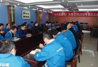 山東起重機(jī)廠有限公司第四屆第二次董事會會議、2009年股東大會于二零零九年三月十四日在山東起重機(jī)廠有限公司會議室召開,公司董事長徐新民主持會議,總經(jīng)理周嗣臣作二零零八年度工作報告,財務(wù)總監(jiān)葛虹作財務(wù)工作報告。會議應(yīng)到股東42人,實到股東36人,公司董事會成員和監(jiān)事會成員列席了會議。經(jīng)過投票表決,會議審議通過了《二零零八年度工作報告》、《二零零八年度財務(wù)決算方案》、《二零零九年度財務(wù)預(yù)算方案》和《二零零八年度利潤分配方案》。