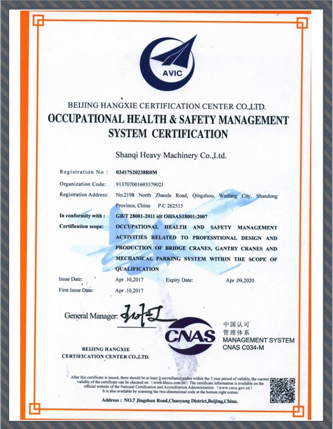 職業(yè)健康安全管理體系認(rèn)證證書(shū)英文