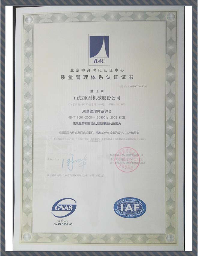 質(zhì)量管理體系認(rèn)證證書(shū)