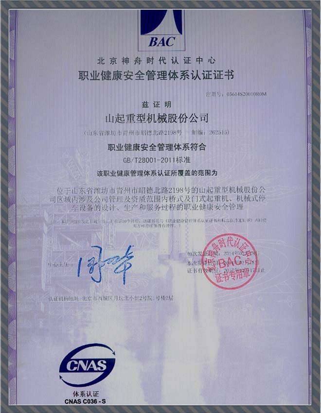 職業(yè)健康安全管理體系認(rèn)證證書(shū)