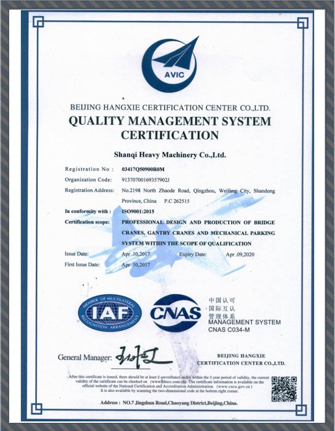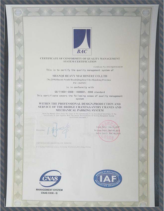 質(zhì)量管理體系認(rèn)證證書(shū)英文