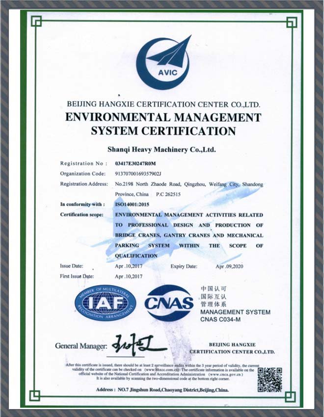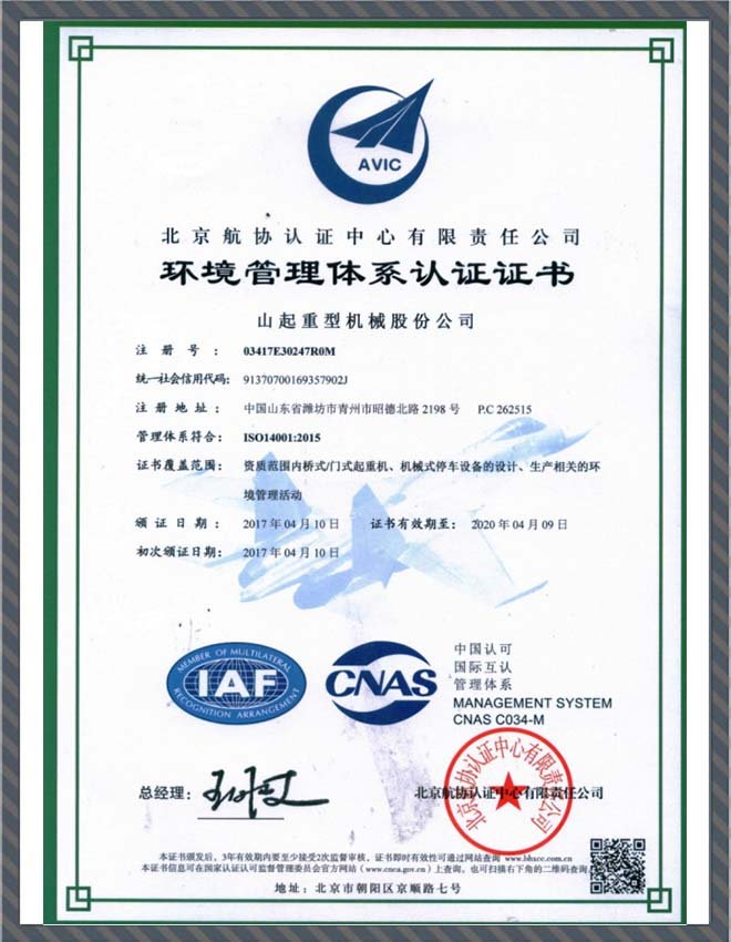 環(huán)境管理體系認(rèn)證證書(shū)
