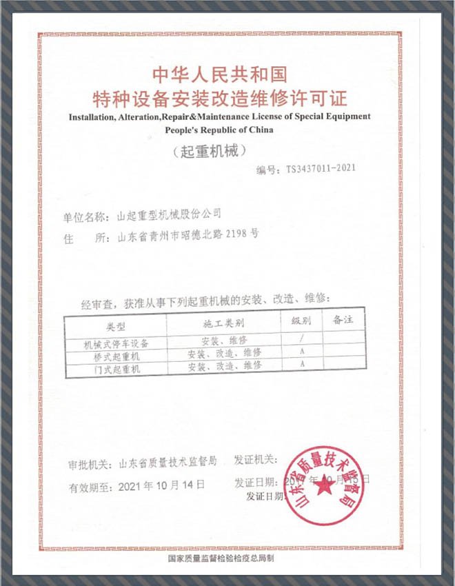 特種設(shè)備安裝改造維修許可證