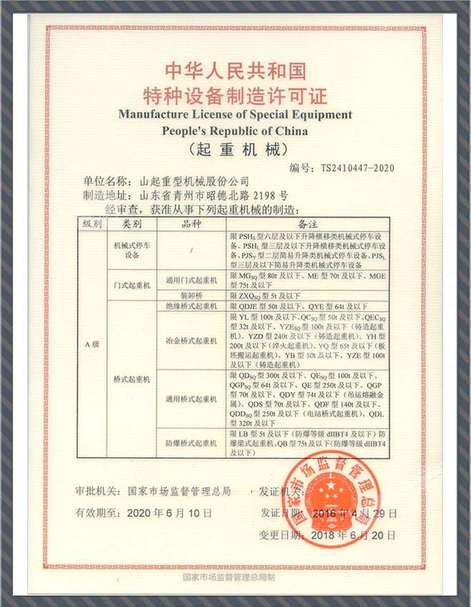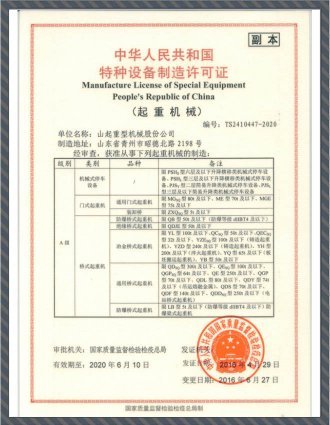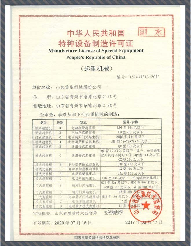 特種設(shè)備制造許可證